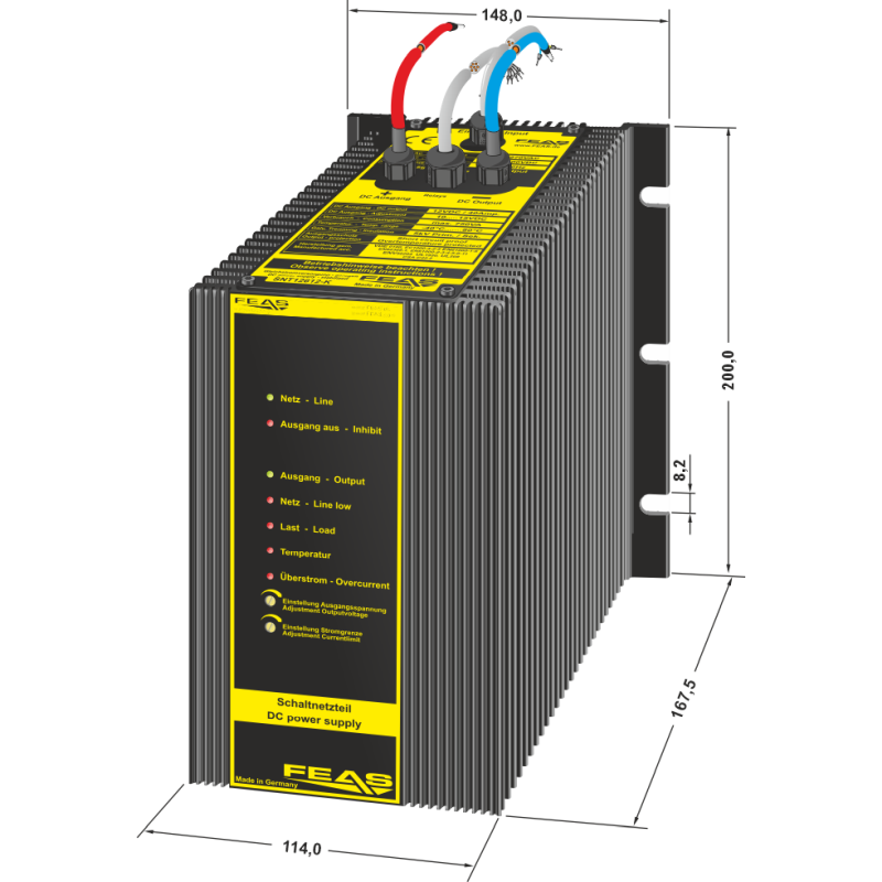 - Relais-Kontake für Fernüberwachung (Übertemperatur, Überlast, Kurzschluss)