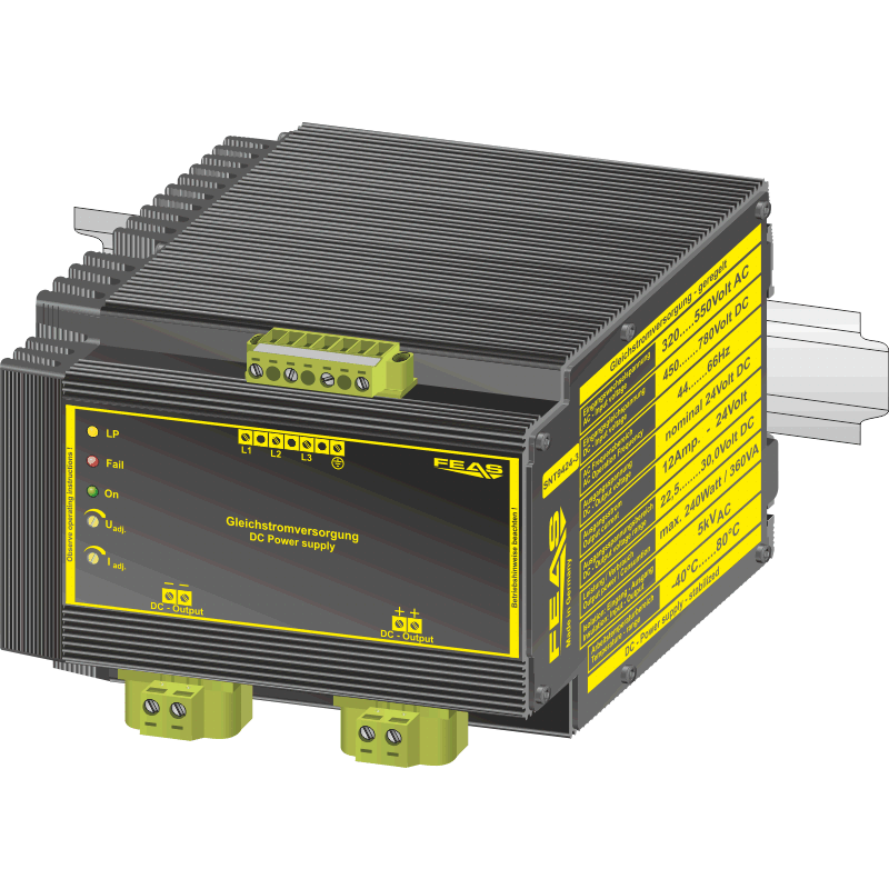 Die Netzteile der Serie SNT94-3 sind leistungsfähige und robuste 3-Phasen Schaltnetzteile zur Versorgung von empfindlichen Verbrauchern in rauer Industrieumgebung. Diese Eigenschaften ergeben sich unter anderem dadurch, dass moderne Konstruktion mit guter Funkenentstörung und hoher Funktionssicherheit in ein funktionelles und stabiles Gehäuse integriert sind. Die kurzschlussfeste Ausgangsgleichspannung dieser Ausführung ist einstellbar. Der Ausgangsstrom kann kurzfristig bis auf 120% des Nennwertes steigen, weswegen dieses Netzgerät bestens für Lasten geeignet ist, die einen hohen Anlaufstrom benötigen.